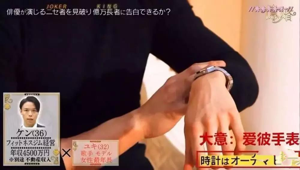 例如这一“健身男”弟兄,说自身运营健身会所,年收入大约270万美元。西装笔挺,秀发梳得老总派头,一出场就要女特邀嘉宾和节目主持人感觉是个真·富豪。 闲聊中,还展现了手里戴的爱彼手表。
