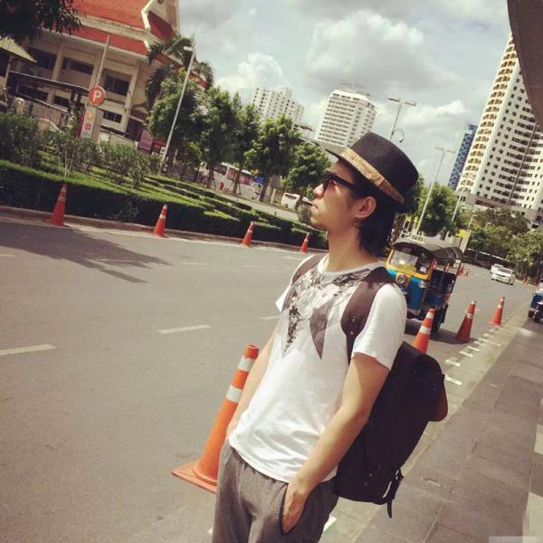 这张拍攝于泰国曼谷街边,拍的人物坐姿有点儿生涩,画面构图法也太正。