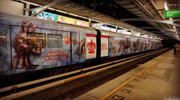 拍攝于泰国曼谷的天轨,这儿真心实意要赞一下别人的火车上广告词的设计方案啊,颜色丰富多彩,具有視覺撞击力,再看一下中国的公交车地铁的画面......天朝要走的路还太远啊!