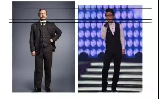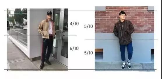 简言之就是说左侧的腿看起来比右侧的长嘛! 人们在平时衣着中能够尽可能将上下半身比例控制在4:6或是5:8,让腿看起来比上体长。